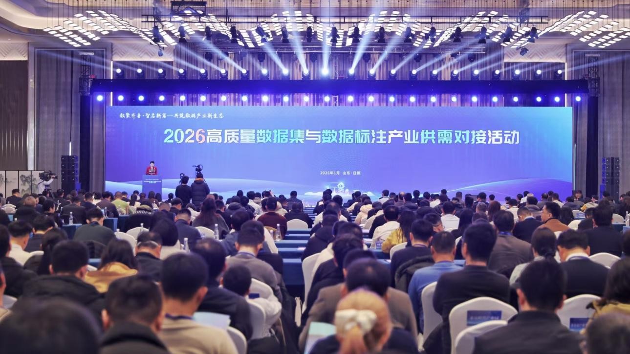 1月14日,2026高质量数据集与数据标注产业供需对接活动在日照市举办。活动以“数智齐鲁·智启新篇——共筑数据产业新生态”为主题,聚焦具身智能、医疗健康、港口物流、工业制造、低空经济、文化旅游等行业领域,吸引了来自全国100多个市县数据管理部门、300余家数据标注企业,有关科研院所、金融机构、行业协会的负责同志以及高校毕业生等近千人参加。